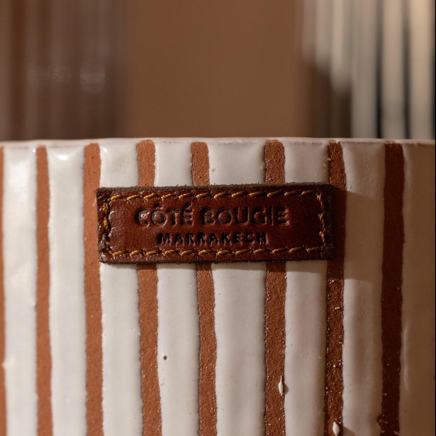 A Zebra Terra kollekció tiszta fehér alapot kombinál a meleg terrakotta árnyalatú függőleges csíkokkal. Minden darabot marokkói nők kézzel készítenek, a hagyományos eljárások megőrzik a termék hitelességét, miközben támogatják foglalkoztatásukat és függetlenségüket. Az illatgyertya így nemcsak illatot, hanem stílusos dekorációs elemet is hoz otthonába egy történettel.